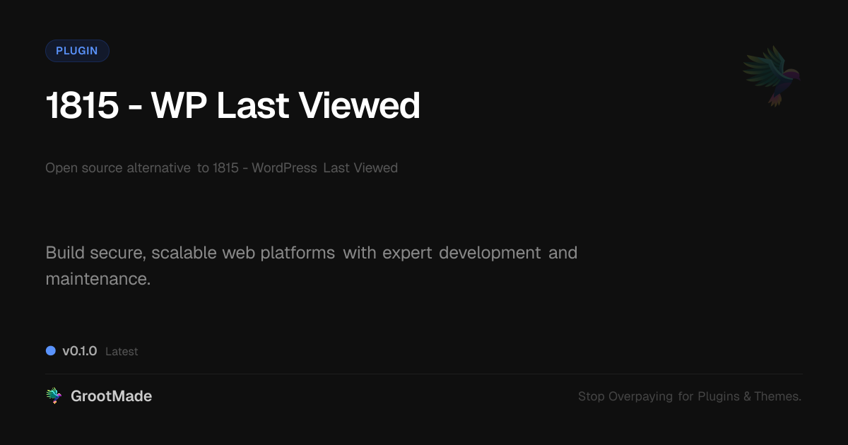 GrootMade is not affiliated with 1815 - WP Last Viewed and provides an open-source alternative.