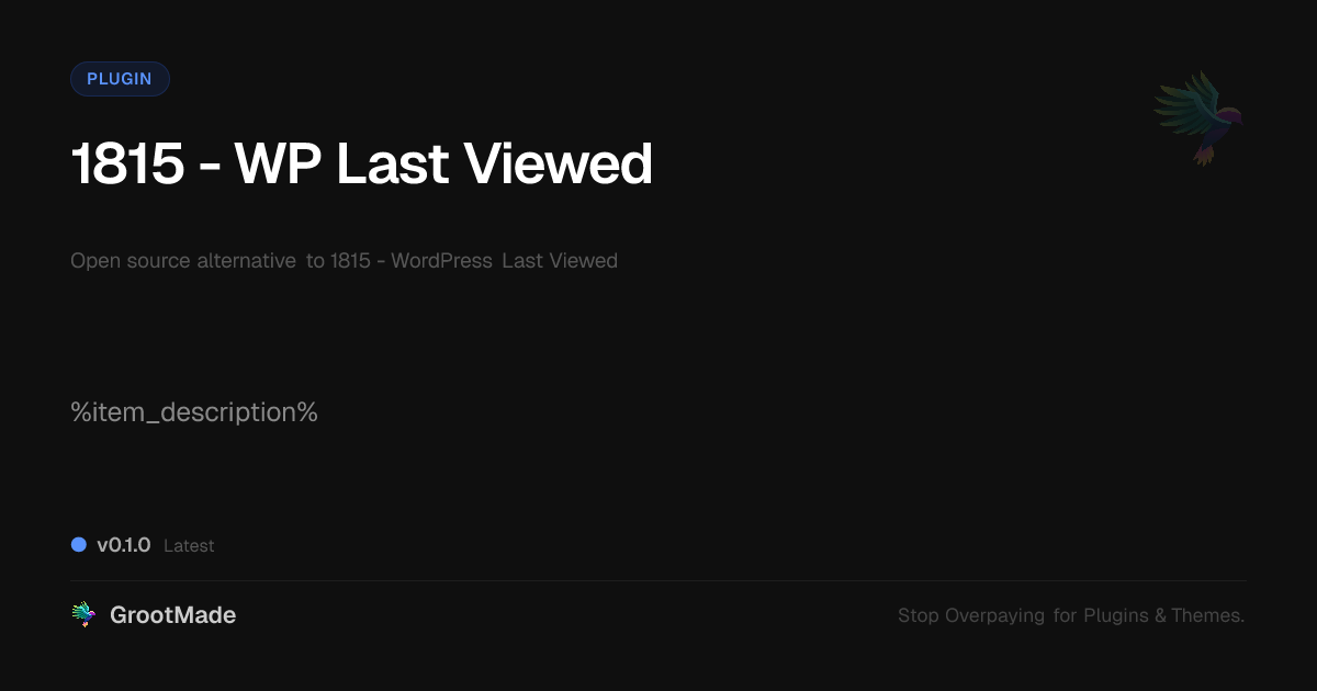 GrootMade is not affiliated with 1815 - WP Last Viewed and provides an open-source alternative.
