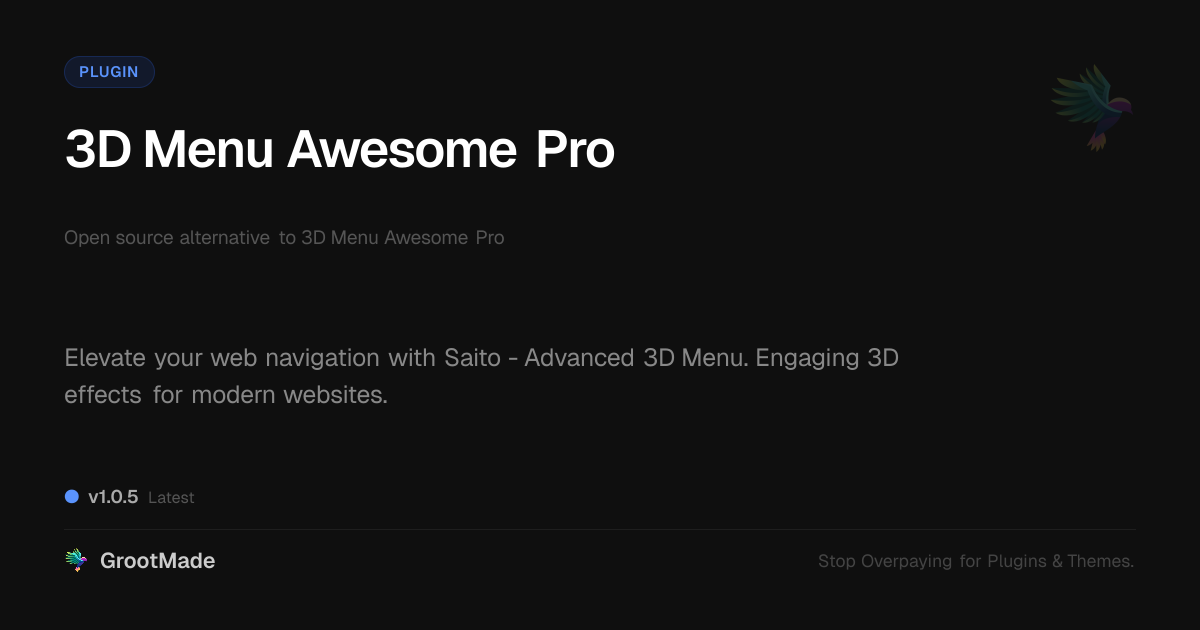 GrootMade is not affiliated with 3D Menu Awesome Pro and provides an open-source alternative.