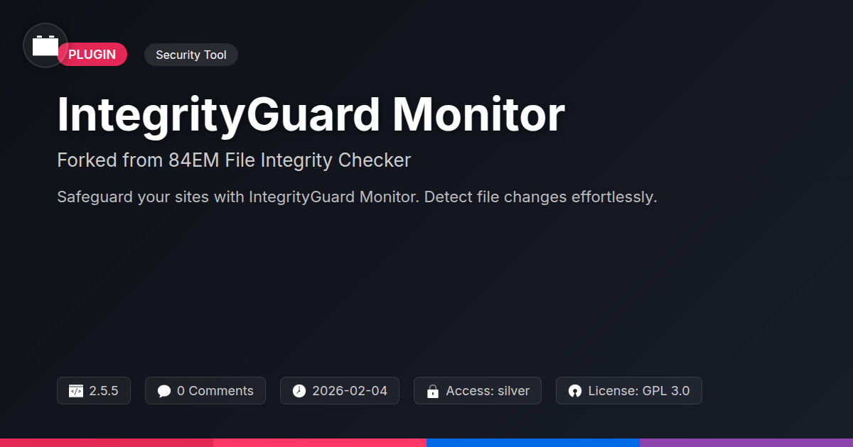 Tags website security, security audit, file integrity checker, site maintenance, Security, Server Security, malware detection, File Checker, Plugin Integrity, security plugin, user contact form, profile tab builder, code monitoring, website protection, File Monitoring, File Changes, File Integrity