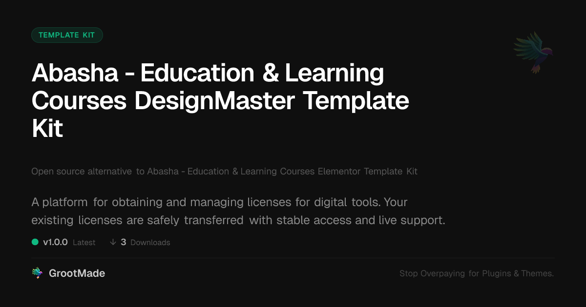 | Forked from | Abasha - Education & Learning Courses Elementor Template Kit |