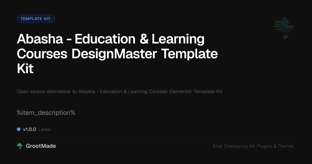 GrootMade is not affiliated with Abasha - Education & Learning Courses Elementor Template Kit and provides an open-source alternative.