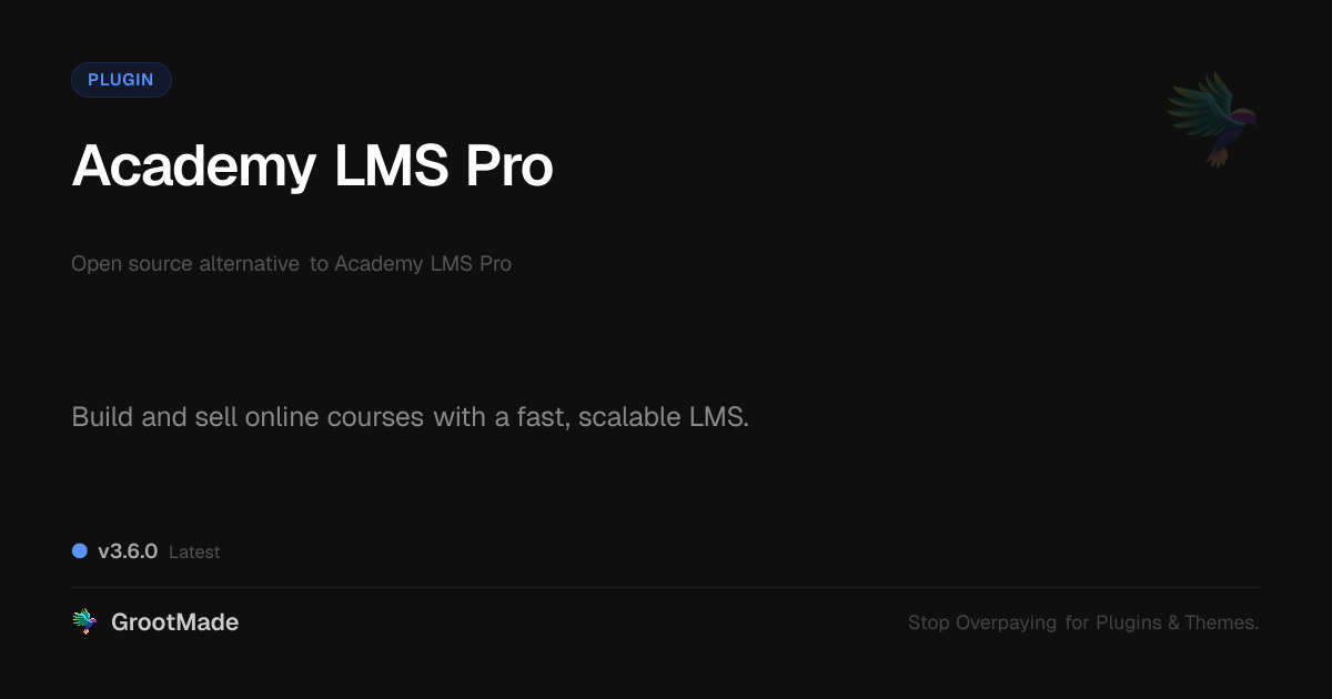 GrootMade is not affiliated with Academy LMS Pro and provides an open-source alternative.