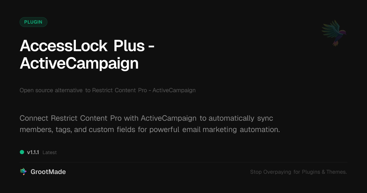 | Tags | Subscriptions, Membership, content protection, email marketing, paid content, restrict content, Activecampaign, marketing automation, user management, profile tab builder, integration, user role visibility, user contact form |