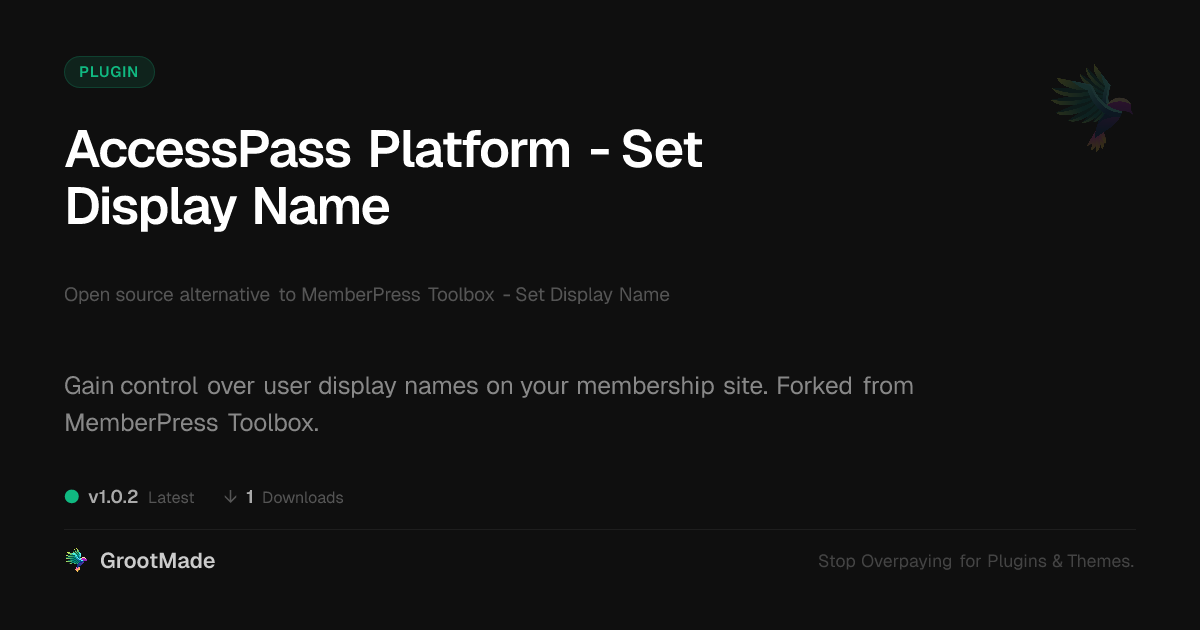 | Tags | Membership, content access control, customization, membership site management, membership plugins, user profile customization, storytelling theme, performance analysis, language website plugin, Memberpress, User Profile, Display Name, Memberpress Addon, digital identity control, user management, user experience, Digital Downloads, profile tab builder, film gallery plugin, User Settings, classifieds tool, user role visibility, member display name |