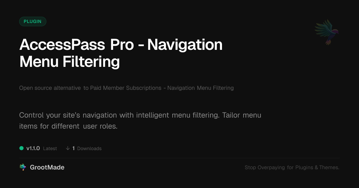 | Tags | restricted content, Subscriptions, Member Areas, access control, Membership, user role visibility, paid content, navigation menu filtering, profile tab builder, Menu, user roles, access control menu, Navigation, user role menu, site navigation control, Filtering, menu visibility |