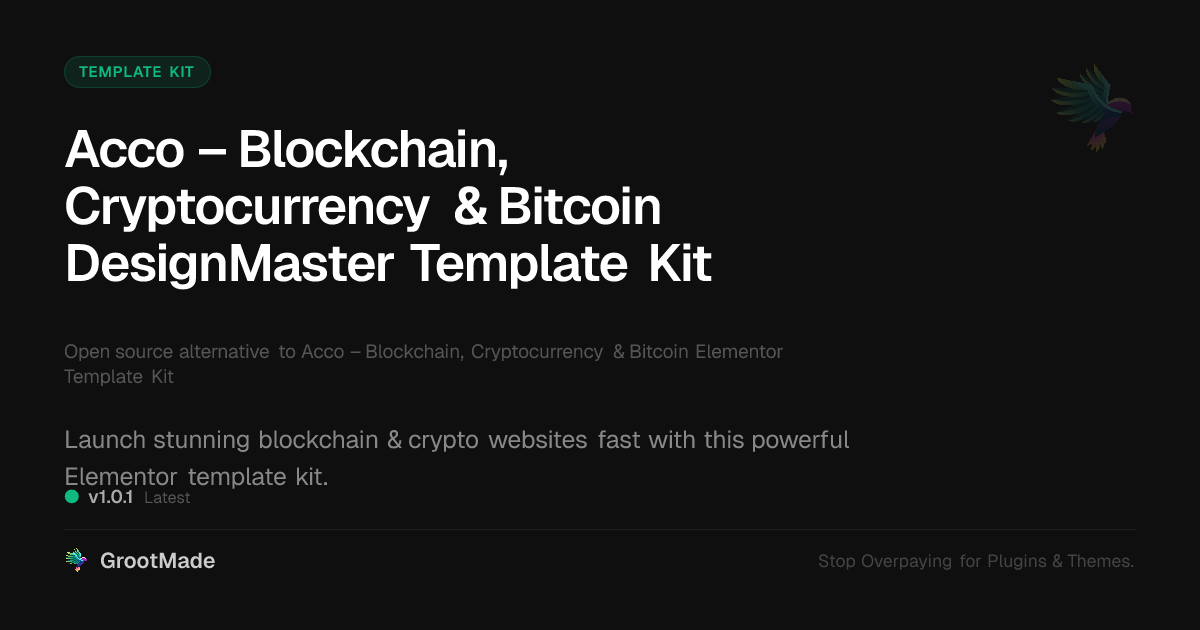 | Forked from | Acco – Blockchain, Cryptocurrency & Bitcoin Elementor Template Kit |