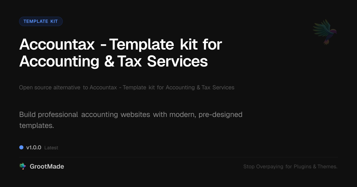 GrootMade is not affiliated with Accountax - Template kit for Accounting & Tax Services and provides an open-source alternative.
