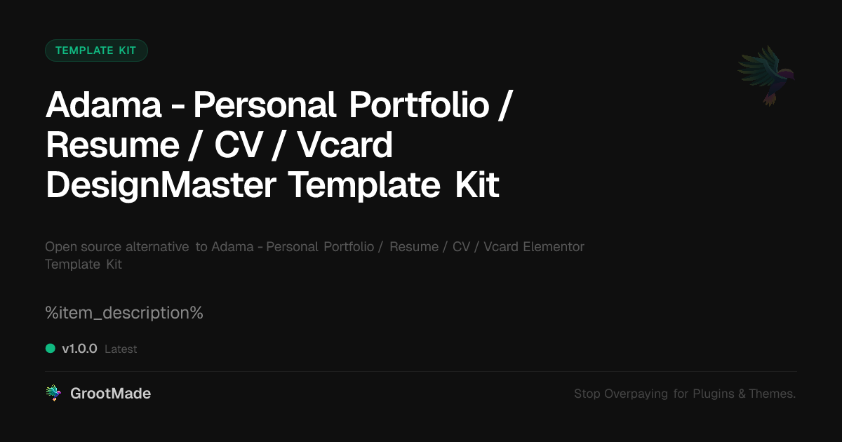 | Forked from | Adama - Personal Portfolio / Resume / CV / Vcard Elementor Template Kit |