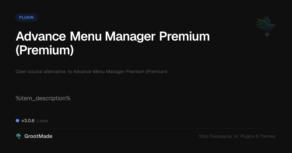 GrootMade is not affiliated with Advance Menu Manager Premium (Premium) and provides an open-source alternative.