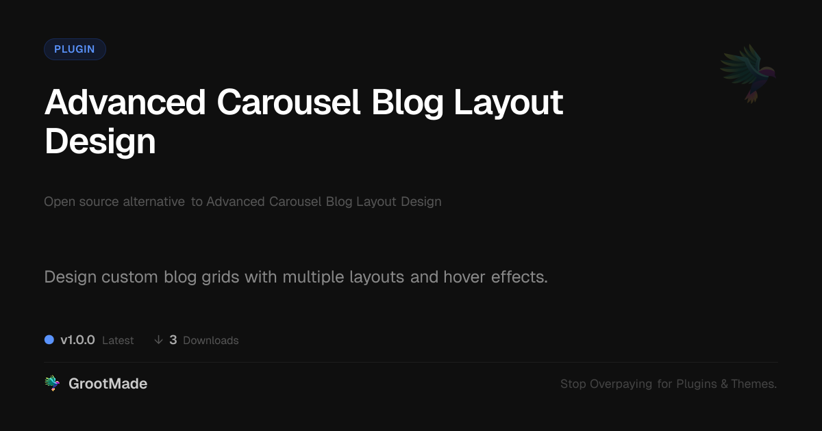GrootMade is not affiliated with Advanced Carousel Blog Layout Design and provides an open-source alternative.