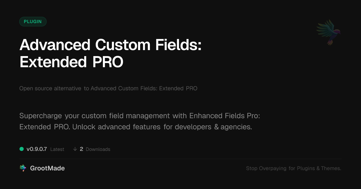 GrootMade is not affiliated with Advanced Custom Fields: Extended PRO and provides an open-source alternative.