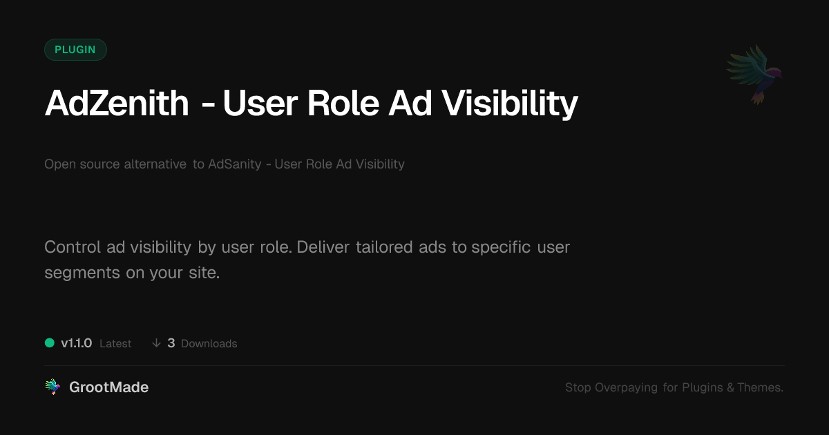 | Tags | ad control, user roles, content targeting, Role Based Access, Ad Display, digital identity control, profile tab builder, user role visibility, ad control plugin, ads by role, user role ad visibility, website advertising, Adsanity, ad management, Role Visibility, permissions, advertising, Visibility Settings, member communication plugin, user contact form |