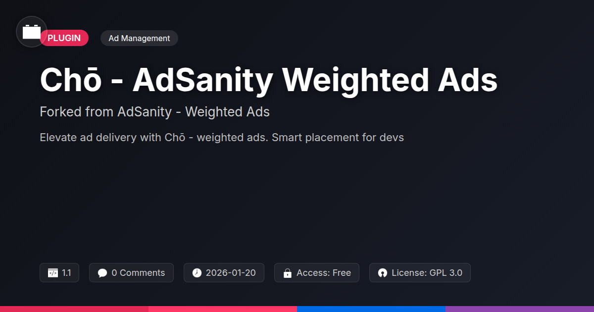 | Tags | content monetization, ad placement, weighted ads, display ads, monetization strategy, weighted advertising, php script repository, php agency toolkit, Ads, Ad Rotation, monetization, publisher tools, profile tab builder, user role visibility, web development tools, Adsanity, ad management, advertising, user contact form |