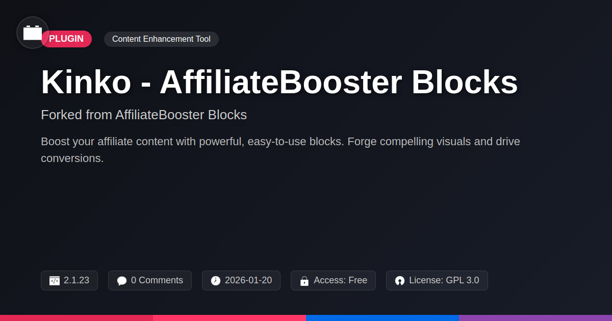 | Tags | website design tools, gutenberg, affiliate marketing blocks, content creation plugins, payment status, community forum acceleration, php agency toolkit, Conversion, Affiliate, Ads, Blocks, Links, open source plugins, monetization, discussion board performance, online community safety, conversion optimization, WC, recent profile visitors, marketing, user role visibility, Ecommerce |