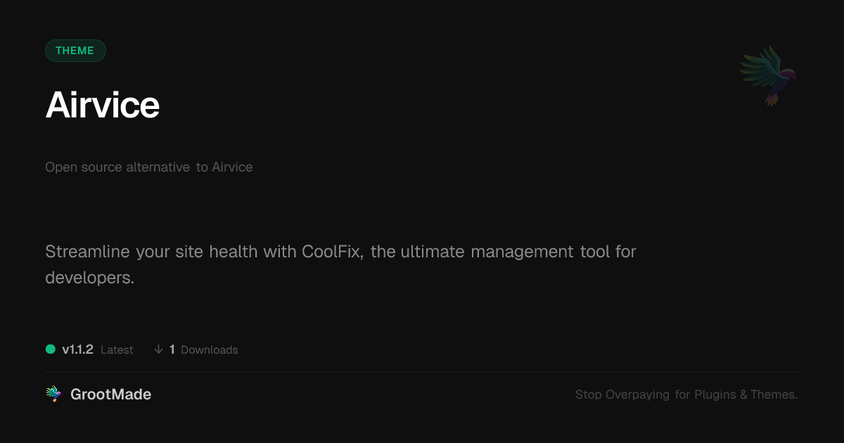 | Tags | digital asset monitoring, minimal, business, website health, Lightweight, clean, user role visibility, corporate, Professional, site management, AMP content fields, multipurpose, user contact form, Digital Downloads, digital delivery payments, member communication plugin, responsive, online community safety, hosting management, customizable, modern |