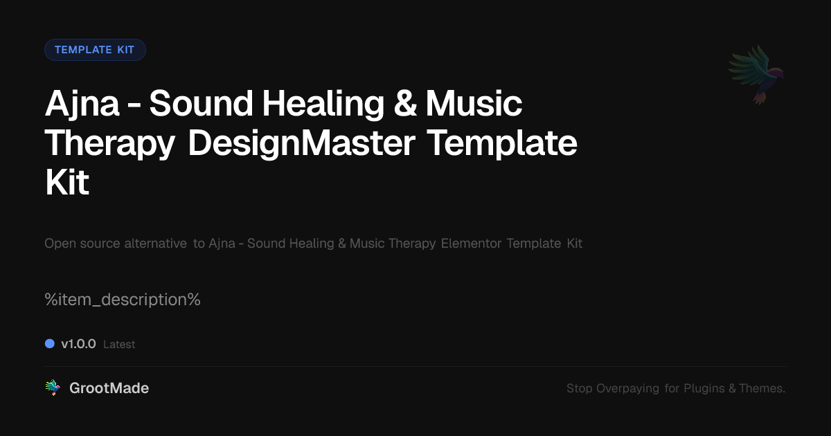 GrootMade is not affiliated with Ajna - Sound Healing & Music Therapy Elementor Template Kit and provides an open-source alternative.