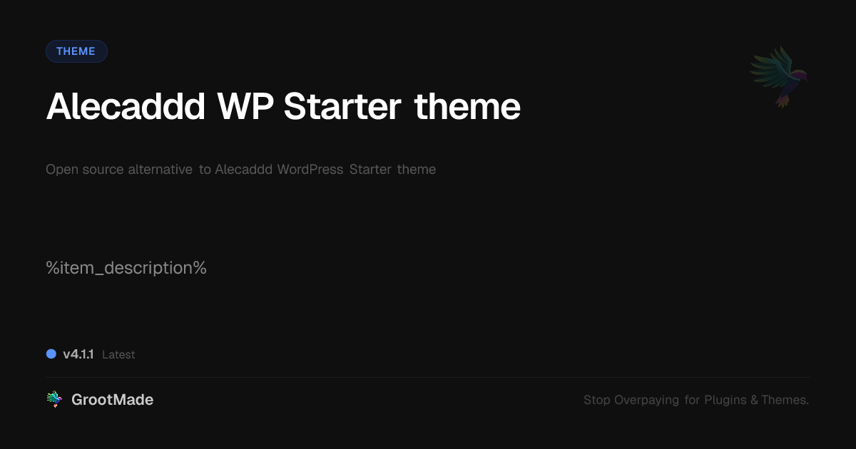 GrootMade is not affiliated with Alecaddd WP Starter theme and provides an open-source alternative.