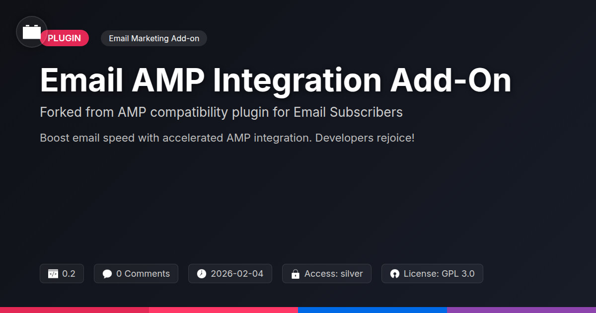 | Tags | Amp, marketing automation, Email Design, email marketing, faster subscriptions, Responsive Emails, amp email integration, email campaigns, user contact form, open source plugins, Digital Downloads, dynamic content, Newsletters, payment status, downloadable product plugin, email templates, email opt-in forms, Email |