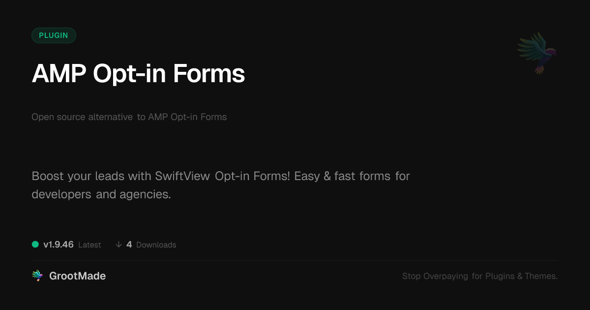 GrootMade is not affiliated with AMP Opt-in Forms and provides an open-source alternative.