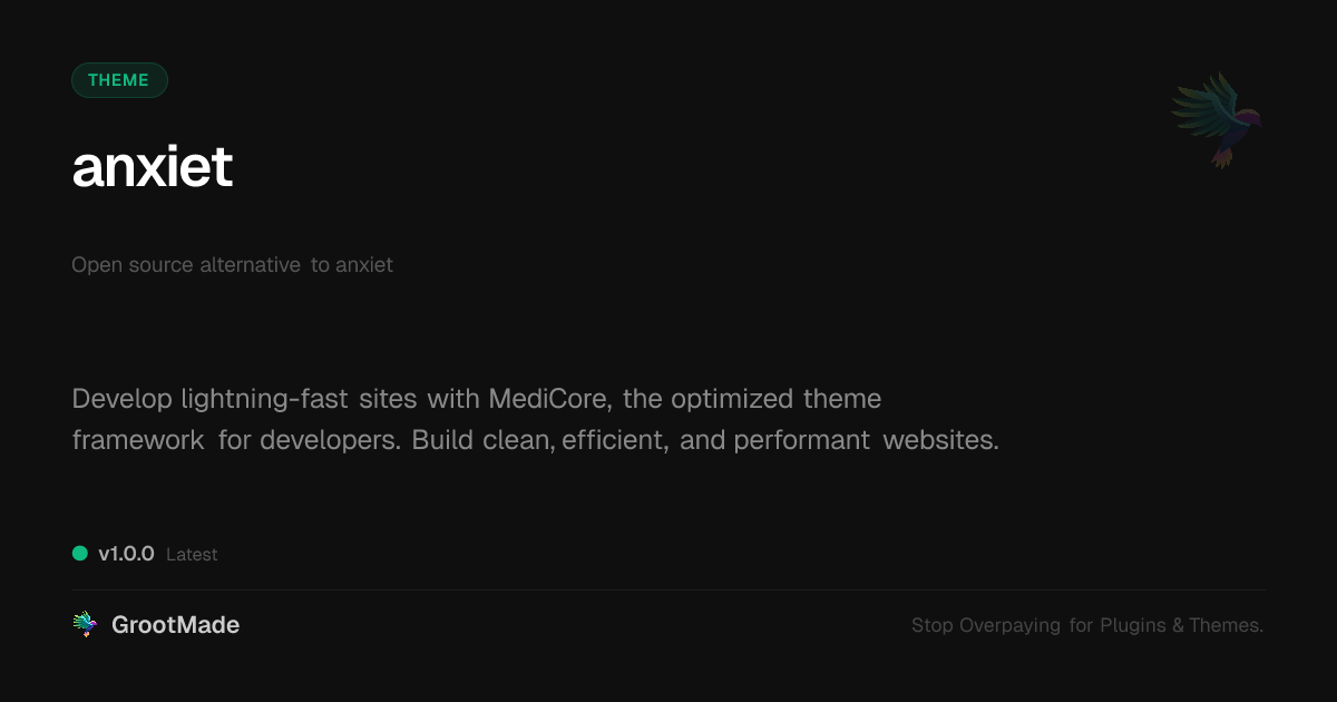 | Tags | website performance, open source theme, multilingual developer tools, contact information, Simple, Wellness, Therapy, Mental Health, Anxiety, Self Care, Counseling, Psychology, theme framework, customizable theme, digital identity control, Digital Downloads, clean, Minimalist |