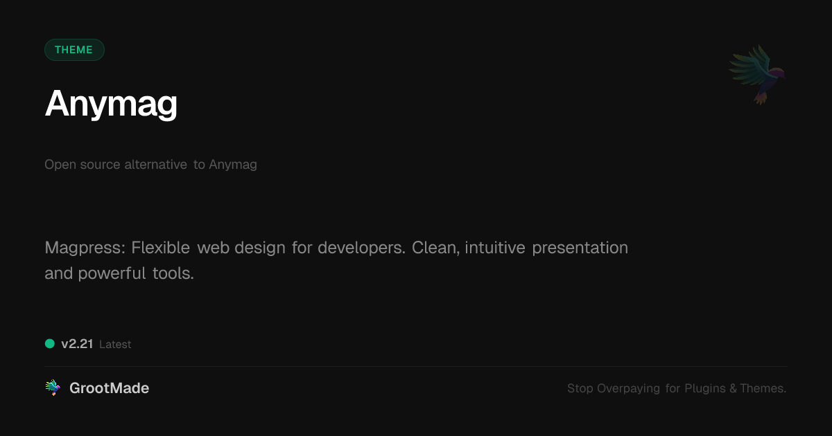 | Tags | flexible themes, download monitor integration, php script repository, morphing animations, dynamic content builder, Grid, News, Magazine, Content, customizable, theme development, agency themes, typography, digital identity control, online community safety, Digital Downloads, customizable themes, recent profile visitors, downloadable product plugin, modern, responsive, blog, multipurpose |