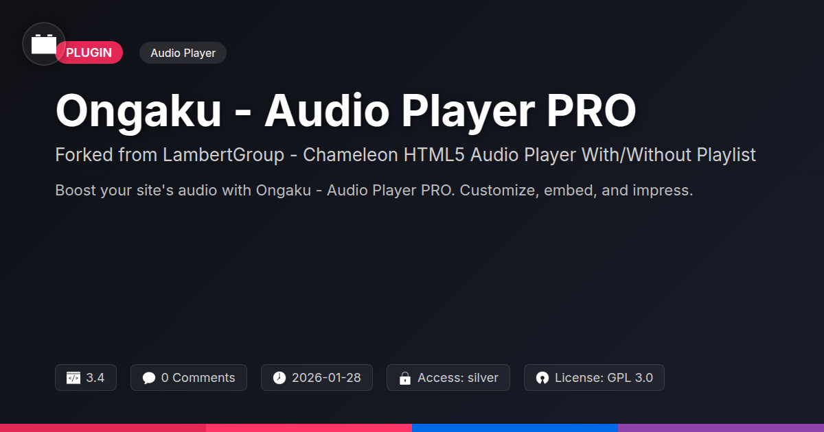 | Tags | audio player, media player, html5 audio player, developer audio tool, web audio, custom audio embed, playlist player, playlist, masonry blog layout, Multimedia, Podcast, Music Player, Sound, Html5, Custom Player, online community safety, recent profile visitors, profile tab builder, website audio plugin |