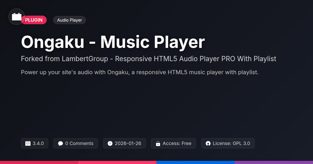 | Tags | audio player, media player, html5 audio player, open source audio, web audio, responsive audio player, playlist player, music player plugin, playlist, Podcast, Music Player, Audio Playlist, Sound Player, Html5, online community safety, responsive, downloadable product plugin |