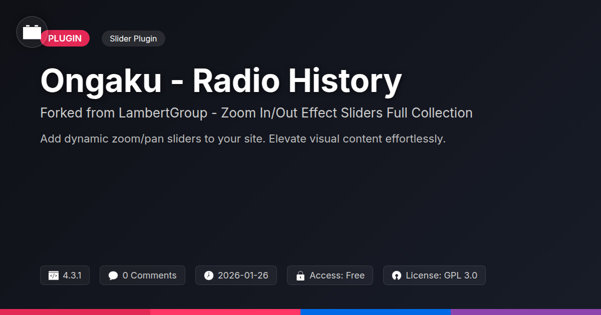 | Tags | product showcase, content slider, gallery, visual effects, visual effects plugin, interactive elements, pan effect, zoom slider, image animation, WP community tools, Zoom, Image Zoom, Image Enhancement, online community safety, directory comparison, image effects, user experience, Slider |