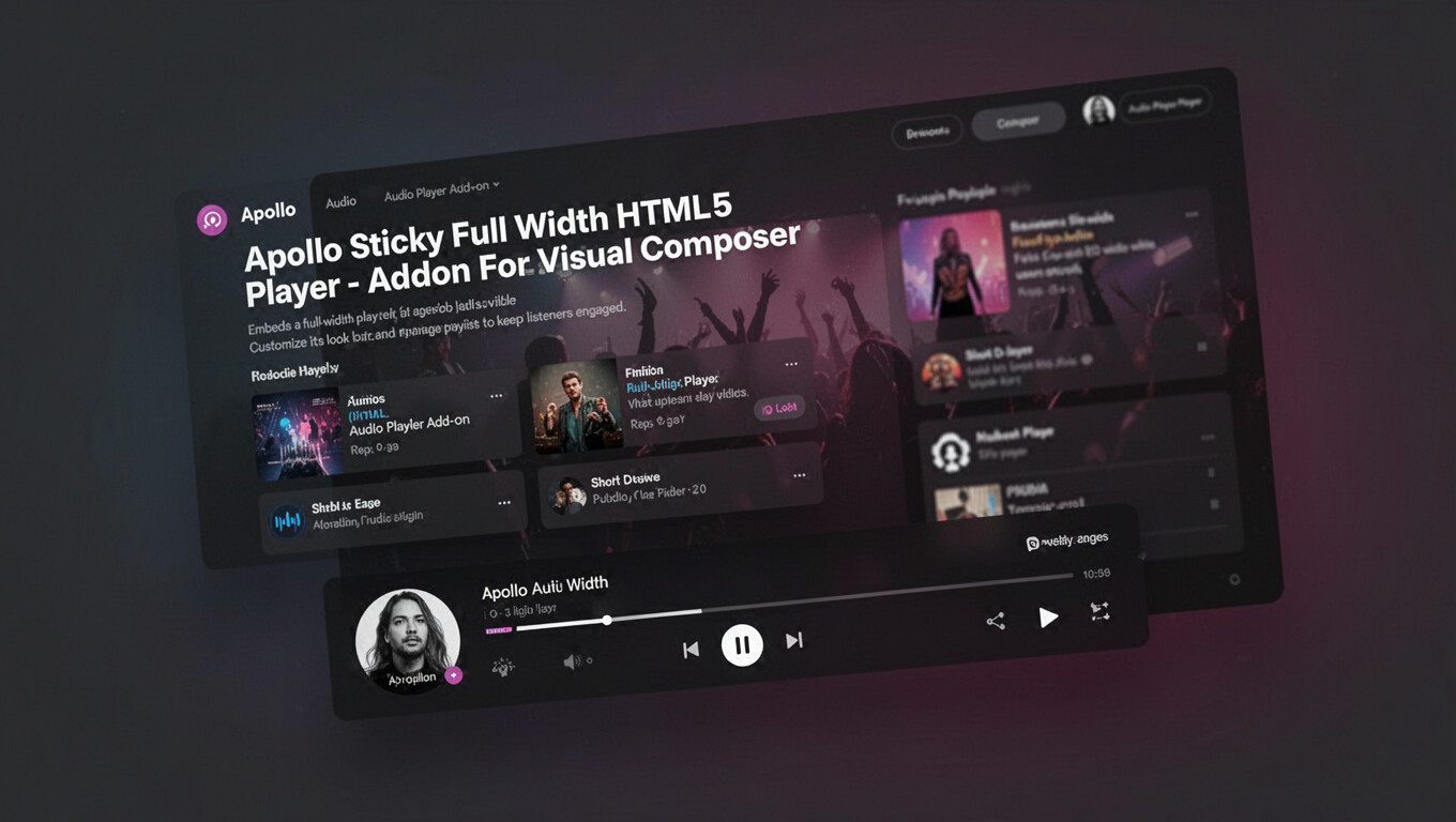 GrootMade is not affiliated with Apollo Sticky Full Width HTML5 Audio Player - Addon For Visual Composer and provides an open-source alternative.