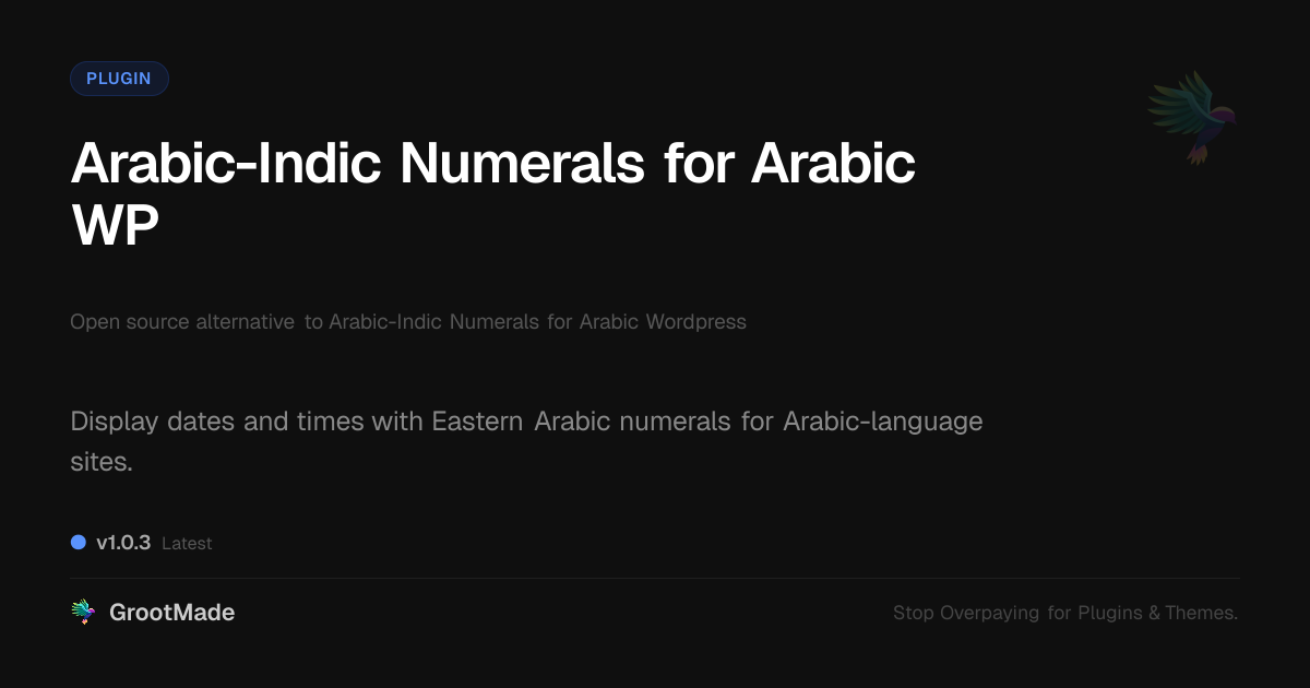 GrootMade is not affiliated with Arabic-Indic Numerals for Arabic WP and provides an open-source alternative.