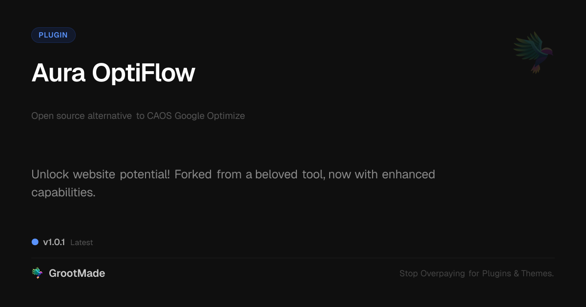 GrootMade is not affiliated with CAOS Google Optimize and provides an open-source alternative.