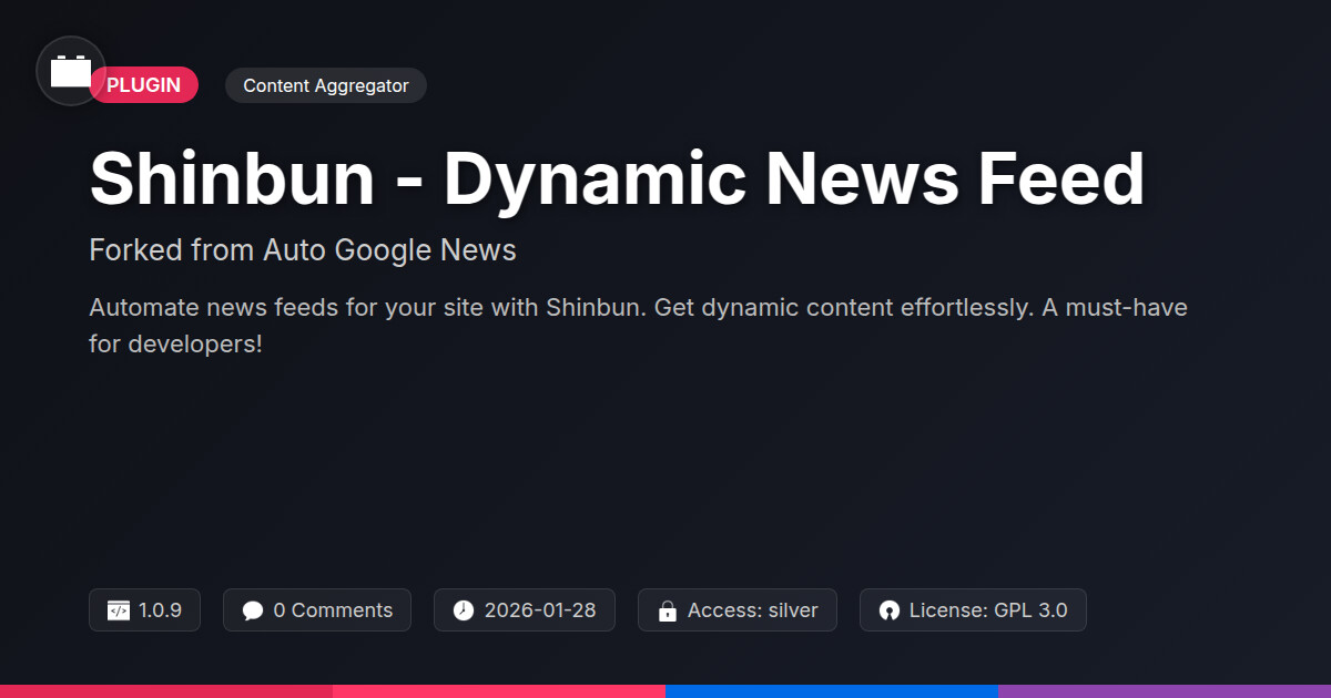 | Tags | dynamic content, news feed plugin, content aggregation, real-time updates, content aggregator, rss feed, download monitor integration, php script repository, News Feed, Feed Integration, News Display, News Widget, News Reader, content management, Digital Downloads, profile tab builder, user contact form |