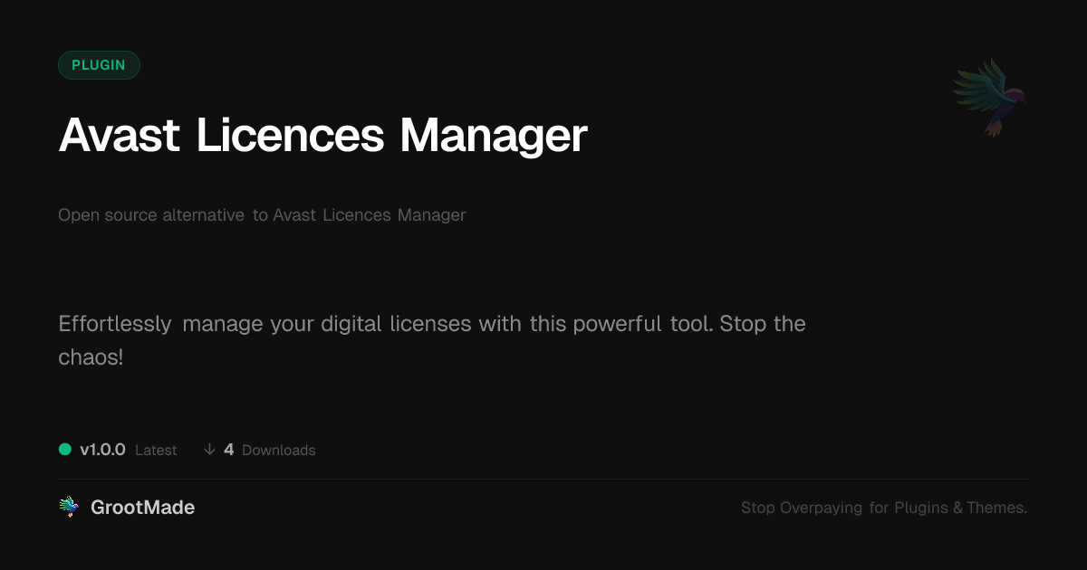 | Tags | Antivirus, license key manager, plugin license organizer, software, user role visibility, Avast, Security, user contact form, Manager, profile tab builder, software license management, member communication plugin, Subscription, Keys, digital asset tracker, design expansion pack, Activation, Protection, online community safety, License, developer license tool |