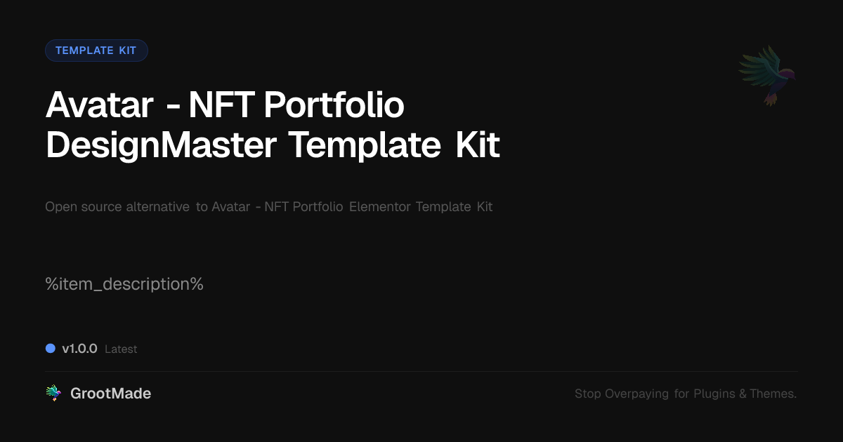GrootMade is not affiliated with Avatar - NFT Portfolio Elementor Template Kit and provides an open-source alternative.