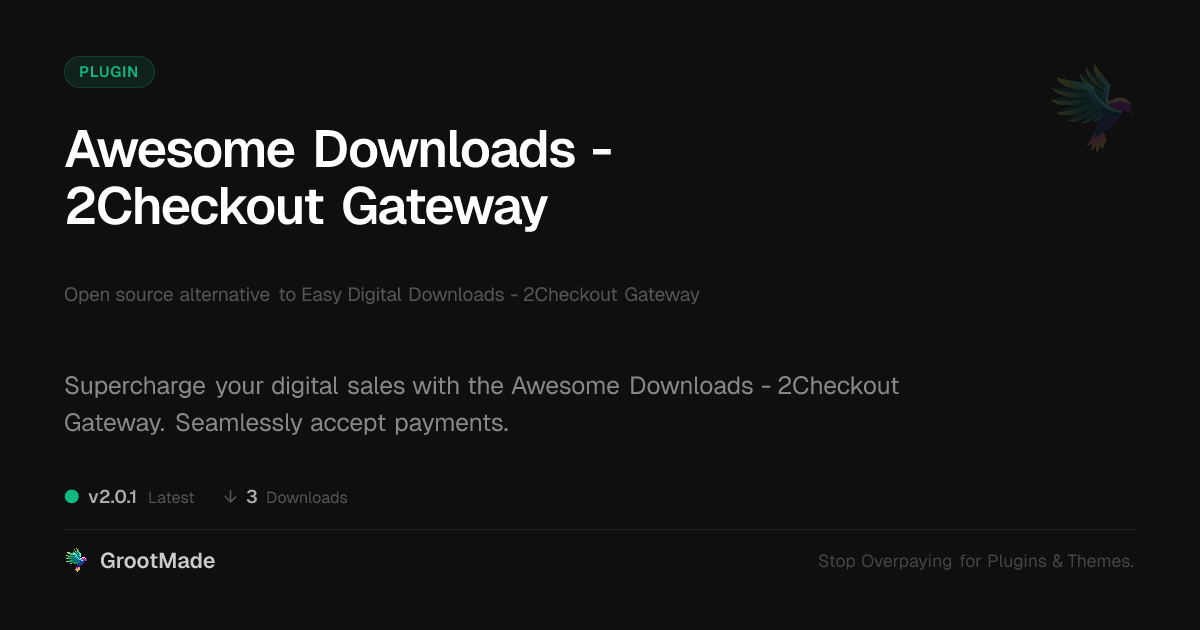 | Tags | online sales solution, downloadable media addon, Downloads, developer payment tool, checkout integration, digital downloads payments, user role visibility, 2checkout, Payment Processing, image presentation addons, ecommerce, Digital Downloads, transaction management, Payment Gateway, member profile enhancements, GA4 server-side tracking, Online Payments, File Downloads, 2checkout plugin |