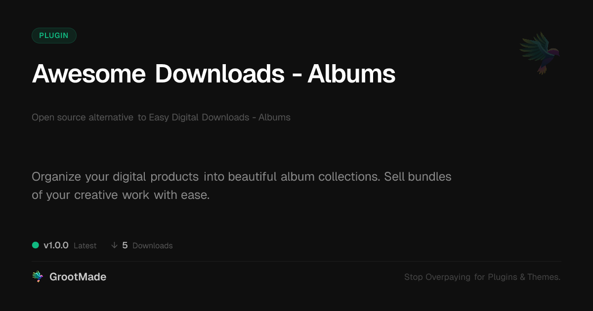 | Tags | digital products, online store, edd extension, Media Sales, download bundling, content delivery, Audio Files, creative asset sales, e-commerce extensions, ecommerce, Digital Downloads, mailerlite integration plugin, music sales, digital product organization, digital identity control, product catalog management, Music Albums |