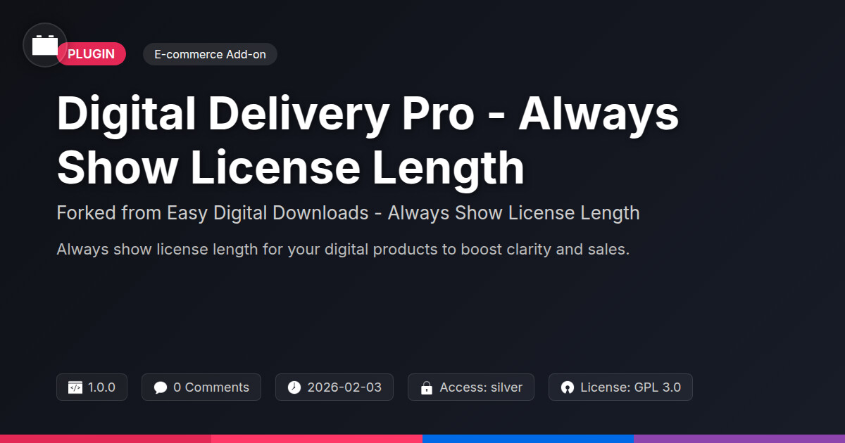 | Tags | digital products, Product Delivery, data tracking software, WC, sell digital products, digital license display, e-commerce license clarity, customer clarity tool, software licensing, Ecommerce, digital delivery, Digital Downloads, license key management, mailerlite integration plugin, member profile enhancements, digital identity control, License Length, image gallery pagination, license management, Checkout |