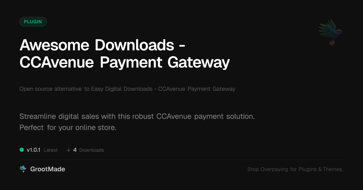 | Tags | payment gateway plugin, secure transactions, ccavenue payment gateway, indie developer tools, Ccavenue, digital product sales, ecommerce integration, Payment Gateway, data tracking software, digital products, Checkout, order management, Online Payments, digital delivery, member profile enhancements, WC, user role visibility, Ecommerce |