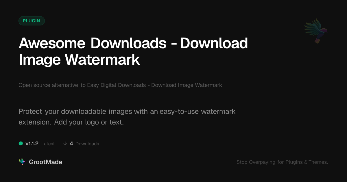 | Tags | download protection, content protection, copyright protection, image branding, digital asset security, image watermark, image security, mailerlite integration plugin, Edd, Watermark, Pdf Watermark, file protection, digital identity control, digital products, Digital Downloads, image protection, Ecommerce |