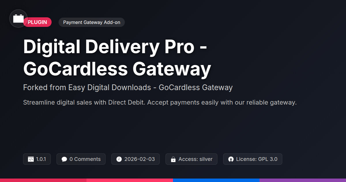 | Forked from | Easy Digital Downloads - GoCardless Gateway |