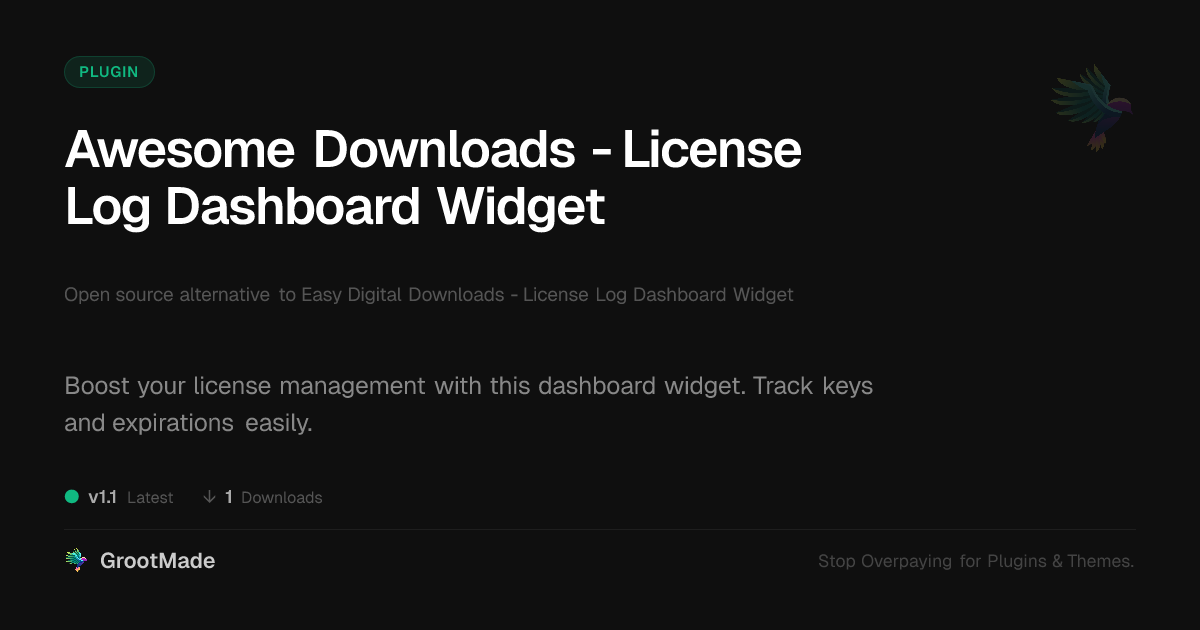 - Awesome Downloads - License Log Dashboard Widget version you are currently using