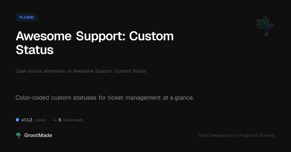 GrootMade is not affiliated with Awesome Support: Custom Status and provides an open-source alternative.