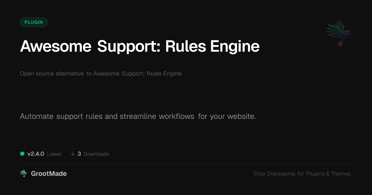 | Tags | support automation, Triggers, customer support plugin, Process Automation, Actions, workflow automation, user role visibility, gallery themes, automation, user contact form, profile tab builder, Workflow, rules engine, dynamic content, ticket management, task automation, conditional logic, Custom Rules |