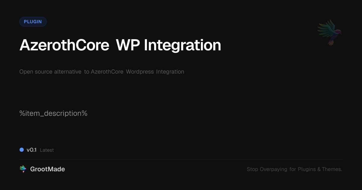 GrootMade is not affiliated with AzerothCore WP Integration and provides an open-source alternative.