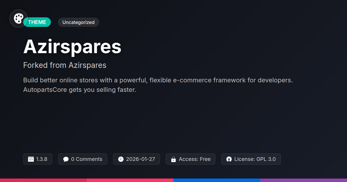 No Affiliation: We are providing a redistributed/forked version of this Theme in accordance with the GPL license. We are NOT affiliated with, sponsored by, or endorsed by WP, WC, Automattic Inc., or the original creators of this product.