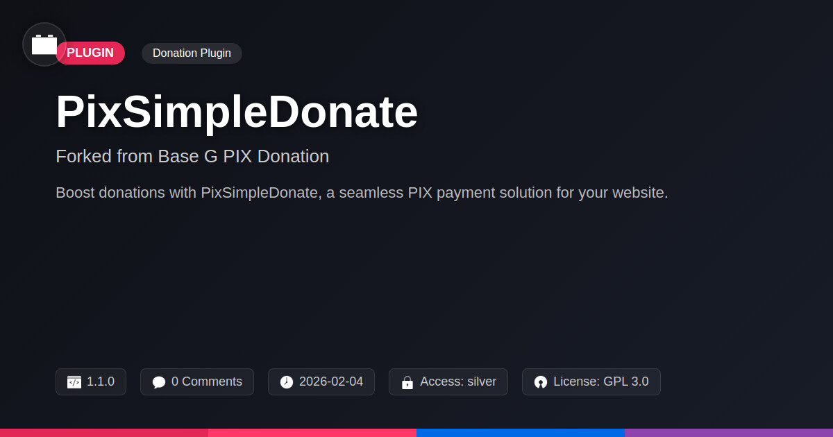 | Tags | open source donations, pix payment gateway, digital currency acceptance, website fundraising, Payments, Fundraising, Donation, Pix, profile tab builder, Gateway, Brazil, Contributions, digital identity control, Charity, donation plugin, Online Giving, Nonprofit |