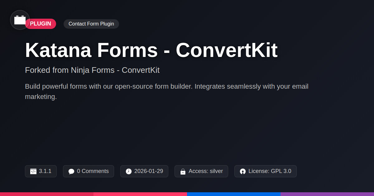| Tags | form builder plugin, email marketing integration, open source forms, website forms, email marketing, payment status, WP gallery migration, gallery printing, Integrations, Ninja Forms, Newsletters, Subscribers, Convertkit, lead generation, automation, crm, Digital Downloads, pagination addon, form builder |