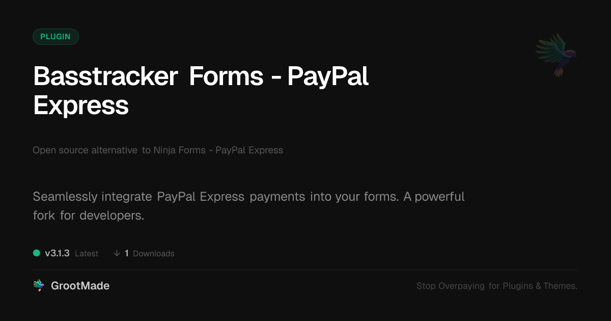 | Tags | developer plugin, form payments, form payment gateway, payment form extension, paypal express integration, website payments, donation forms, membership forms, e-commerce starter theme, Paypal, WC Integration, Ninja Forms, Payment Gateway, data tracking software, Checkout, Online Payments, profile tab builder, Ecommerce, user role visibility, user contact form |