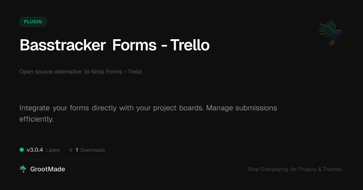 | Tags | developer workflow tools, data sync, form to trello, website form integration, open source form builder, project management forms, branding solutions, Productivity, Submission, Workflow, Trello, lead generation, automation, task management, clean shop design, pagination addon, integration, Forms, user role visibility |